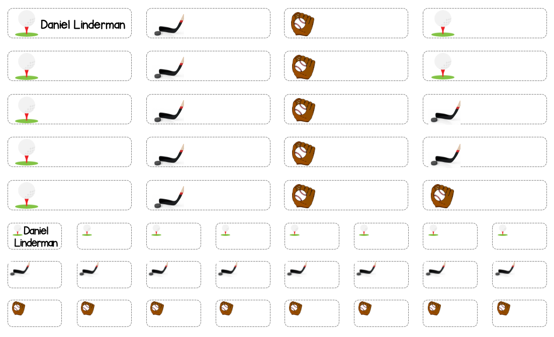 Clothing Labels - golf, hockey and baseball