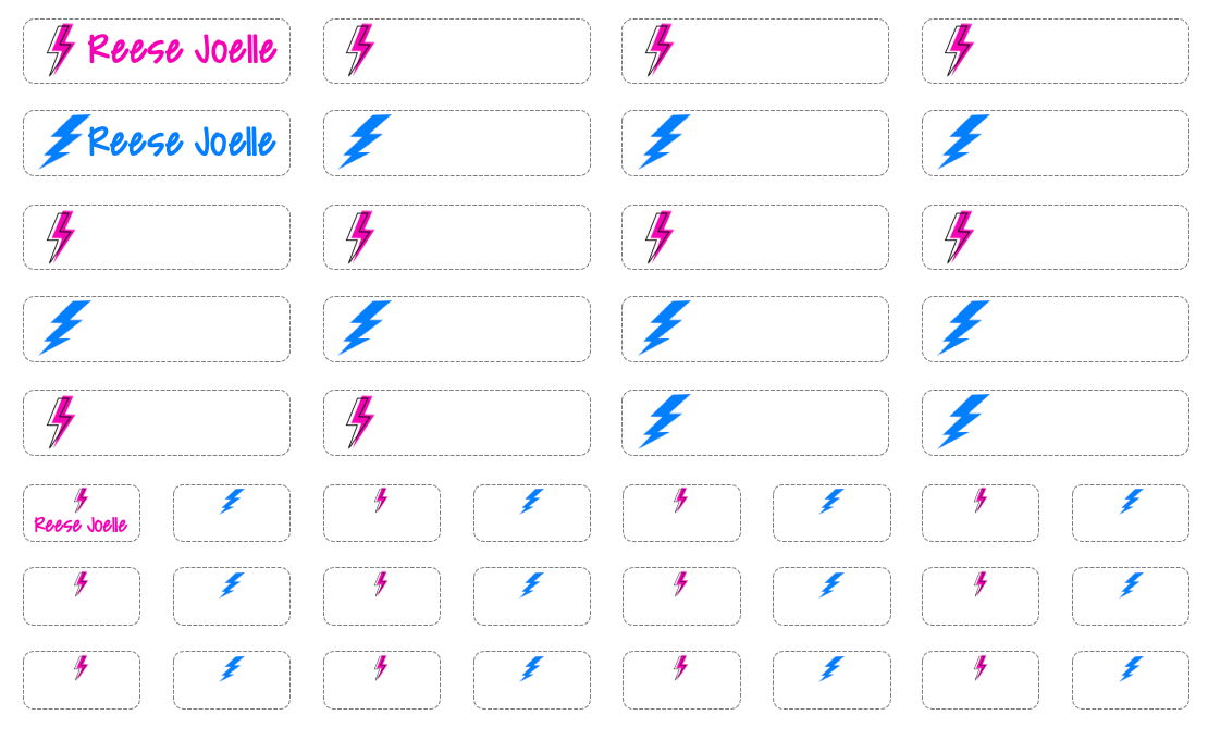 Clothing Labels - pink and blue bolts